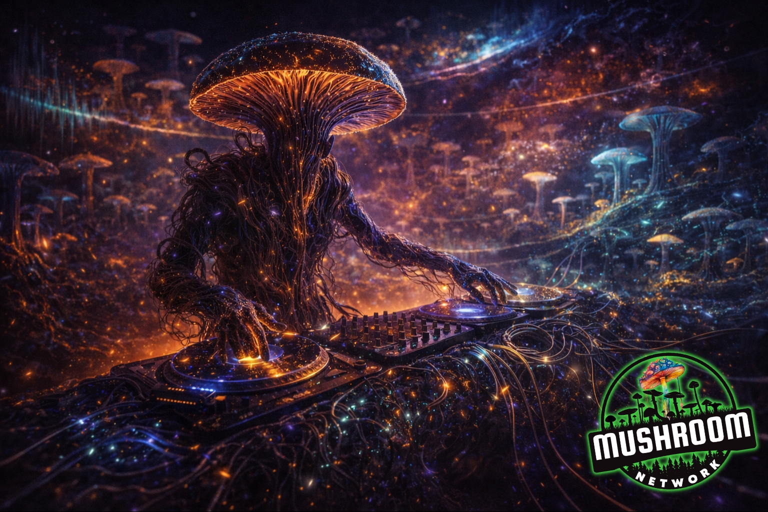 The Mushroom Network is a living broadcast signal, born from the fusion of deep bass consciousness and the bioluminescent code of ancient fungal frequencies.