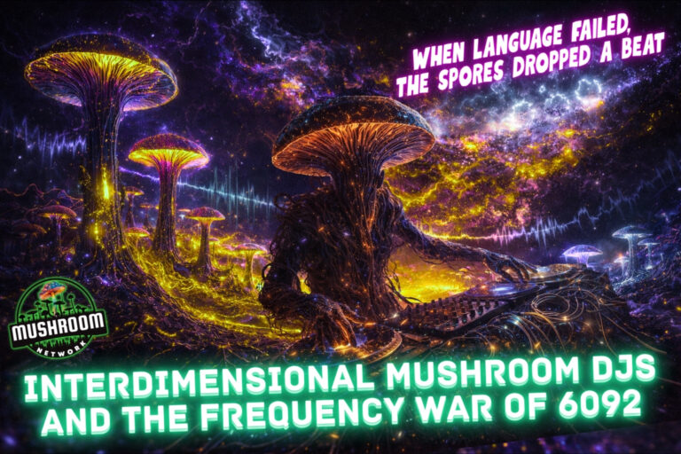 In the year 6092 (depending on your timeline), the Myco-Verses were rocked by the Frequency War—a battle not of weapons, but of resonant basslines and fungal signal storms. Leading the charge? Interdimensional Mushroom DJs who didn’t play music—they channeled it from the Grand Cosmic Mycelial Network itself. This is their story. This is your soundscape. And whether you know it or not, the war never really ended.